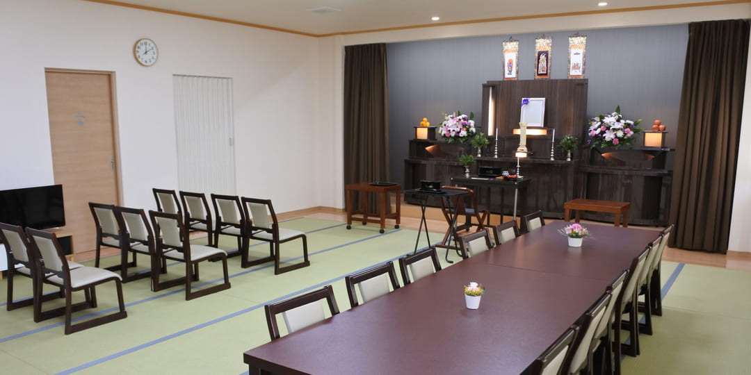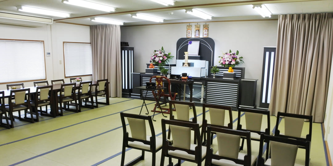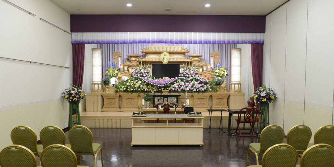 | 設備 | 式場、控室、ロビー、会食室、寺院控室、安置室、冷暖房、給湯室、給茶機、車椅子、バスルーム、アメニティ、駐車場 |